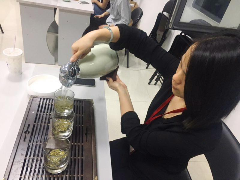 在隨后的茶藝培訓(xùn)里,劉琴老師更是細(xì)致的講解了不同茶的不同沖泡手法,通過現(xiàn)場(chǎng)呈現(xiàn)的方式讓大家對(duì)不同品類的茶葉有了更顯性的對(duì)比。溫杯、洗茶、泡茶、奉茶這幾個(gè)基本步驟是每一種茶葉的基本泡制步驟,參加培訓(xùn)的人員現(xiàn)學(xué)現(xiàn)泡,在劉琴老師的指導(dǎo)下泡茶,并互相奉茶,品茶,呷茶入口,頓覺口鼻生香,借茶香茶韻,一種淡泊謙和的意境油然而生。