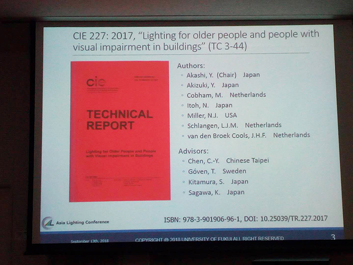 日本福井大學(xué)教授明石行生發(fā)表了關(guān)于“老年人照明需求”的主題演講。