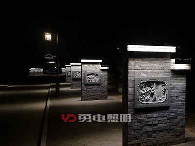 重點(diǎn)照明區(qū)主要表現(xiàn)中軸線上的建筑,以泛光照明為主要設(shè)計(jì)手法,通過(guò)LED洗墻燈照亮瓦面、屋面、檐口、斗拱等構(gòu)建,突出建筑本身的美感,局部細(xì)節(jié)通過(guò)點(diǎn)光源突出,豐富整體視覺效果,不過(guò)度照明,烘托整個(gè)寺院的靜謐感。