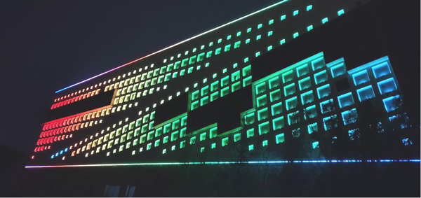 結(jié)合建筑特色和整體氛圍,“三館”外圍立面窗臺(tái)采用LED窗臺(tái)燈進(jìn)行點(diǎn)亮。同時(shí),在項(xiàng)目燈具上進(jìn)行了外殼噴塑處理,提升了燈具隱蔽性,在白天不影響建筑整體美感的情況下讓亮化達(dá)到 “見光不見燈”的效果。