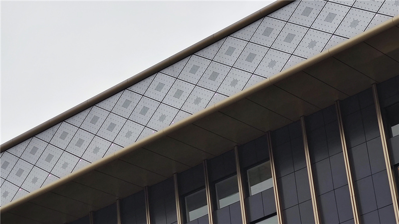 該項(xiàng)目建筑采用大塊面金屬鋁板和玻璃幕墻創(chuàng)造形象挺拔、整體大氣的商業(yè)形象,以流線型外觀勾勒出大氣沉浸的現(xiàn)代感,猶如一幅壯麗秀美的現(xiàn)代藝術(shù)畫卷,突出自身的地標(biāo)形象,極具視覺(jué)沖擊力和力量感。