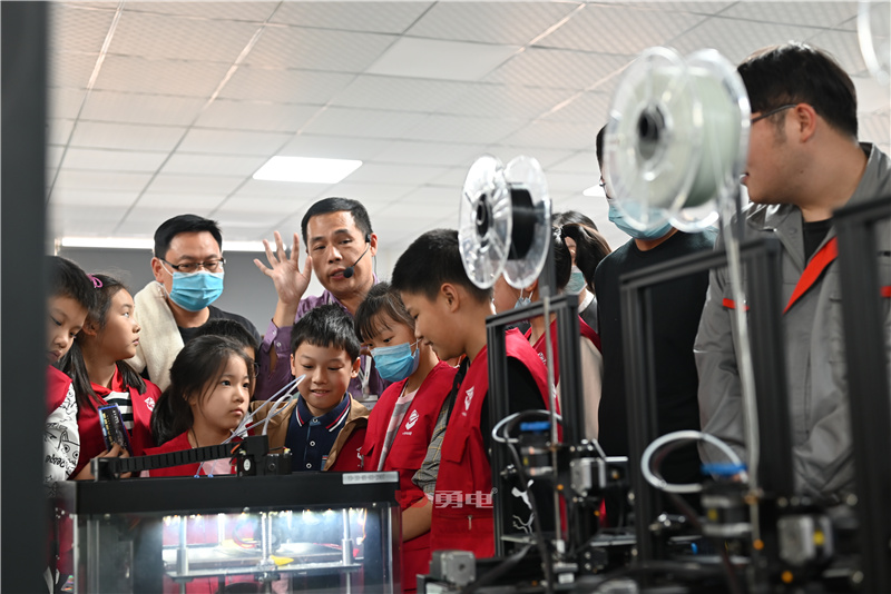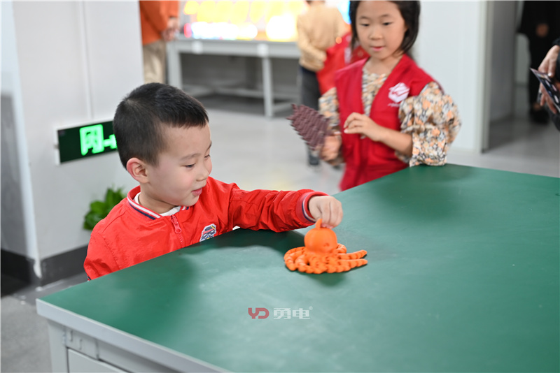 理論課堂結(jié)束后,劉騰海老師帶領(lǐng)小朋友們參觀了勇電生產(chǎn)車間,了解了燈具制作的不同步驟,接著小朋友們來到了勇電實驗室、3D打印車間及勇電展廳,體驗了一場盛大的奇妙燈光之旅。同時互動燈光、3D打印也打開了小朋友們的科技新視界,讓他們對光電有了更深刻的認(rèn)識。
