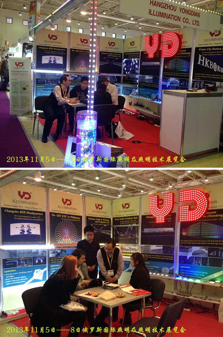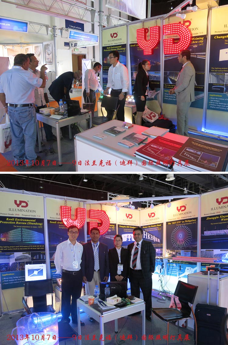 2013年是美好的照明年。我司下半年分別參與了“法蘭克福(迪拜)照明展”、“香港國(guó)際秋季燈飾展”、“阿根廷國(guó)際燈光照明及建筑技術(shù)展覽會(huì)”、“俄羅斯國(guó)際照明及照明技術(shù)展覽會(huì)”、“印度國(guó)際LED照明展覽會(huì)”;其中印度展將于12月19-21日在新德里拉開(kāi)帷幕,歡迎蒞臨參觀。